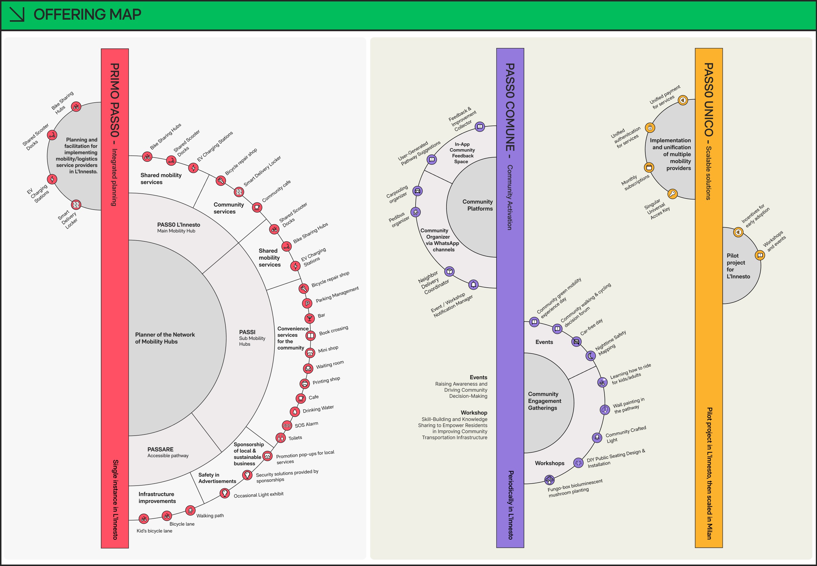 The PASS0 L’Innesto Mobility Hub aims to create a vibrant, accessible, and sustainable urban space with diverse shared mobility options and community-focused services. Key features include:Shared Mobility Services, Support Services and Community Spaces